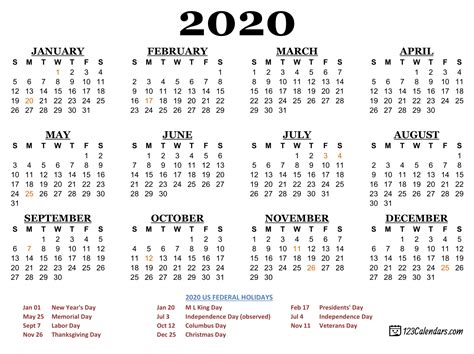 2020 Calendar Year. Web yearly 2020 calendar with marked federal holidays (us) and common observances in portrait format. All calendars print in landscape.