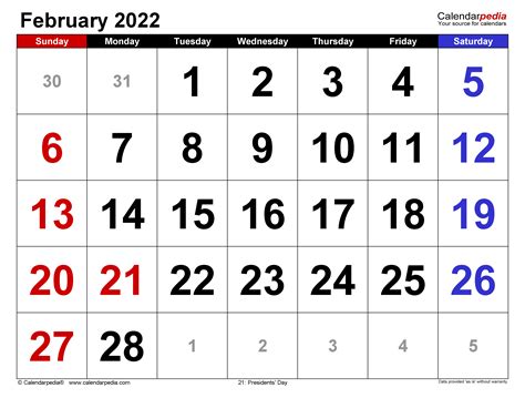 Calendar February 2022 UK with Excel, Word and PDF templates